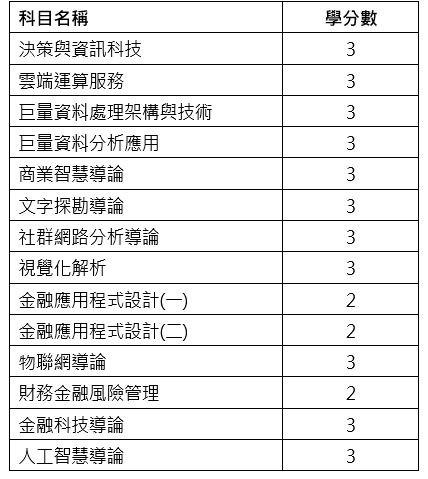 他系雙主修本院之學生辦理學分抵免後,若必修科目學分不足四十學分,需自下方14門選修科目中選擇修讀,以補足不足之學分。